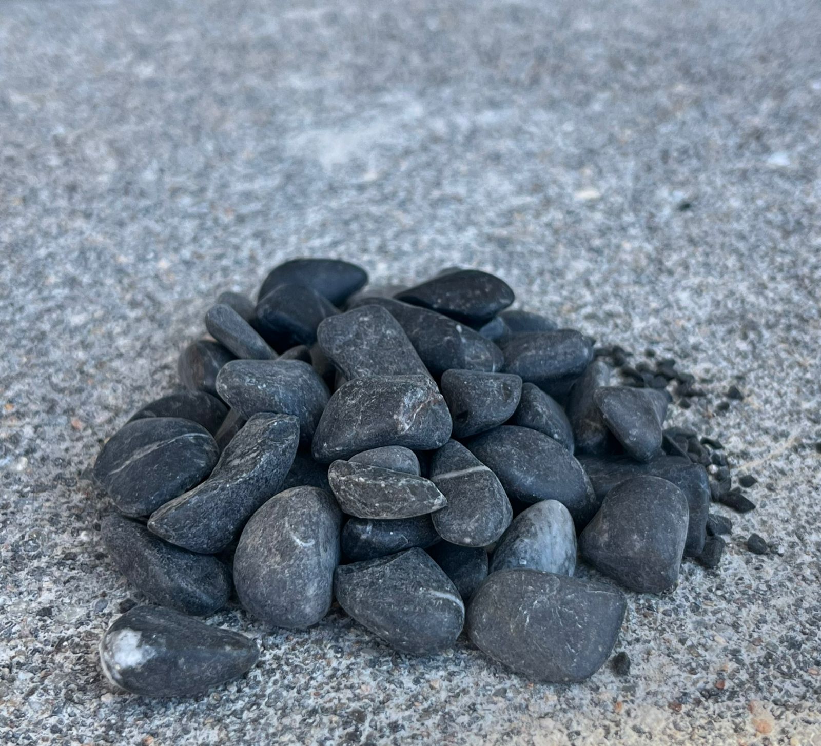 Piedra decorativa de Mármol Negra. -Medida:1/2 -Cant. Aprox: 2kg. Piedra Importada