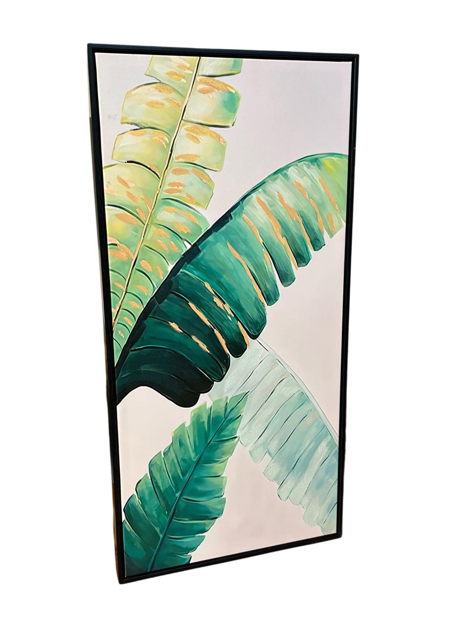 Cuadro de Hojas con marco de color negro. Medidas:40x80cm.