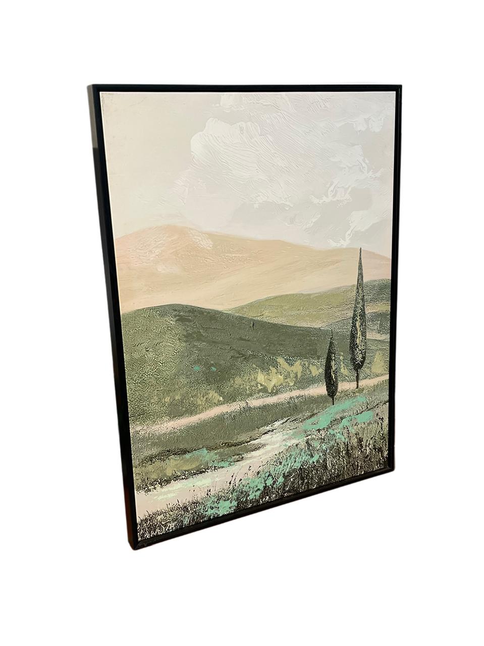 Cuadro de Bosque y rio con marco de color negro. Medidas:60x80cm.
