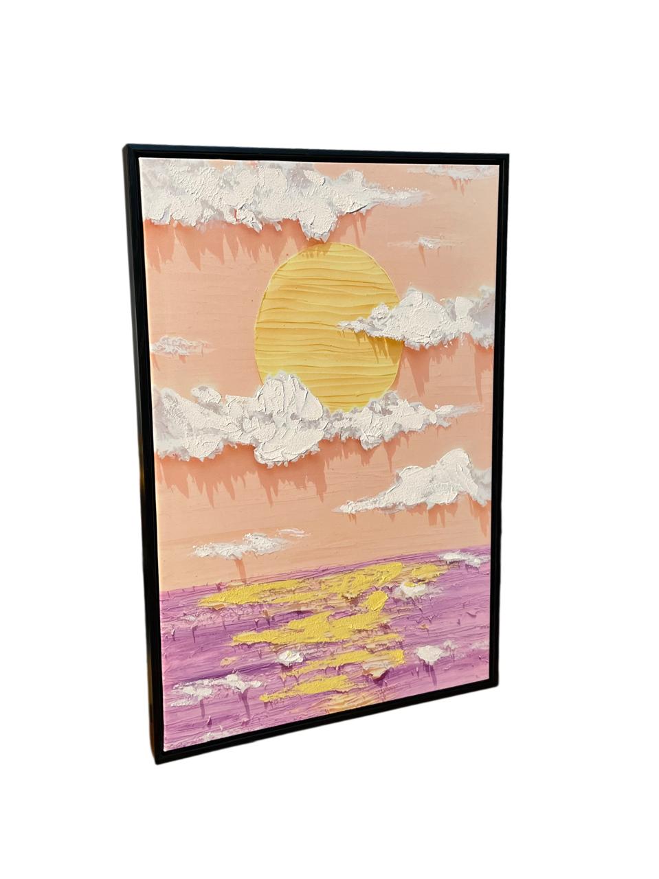 Cuadro de Sol y Océano con marco de color negro. Medidas:40x60cm.