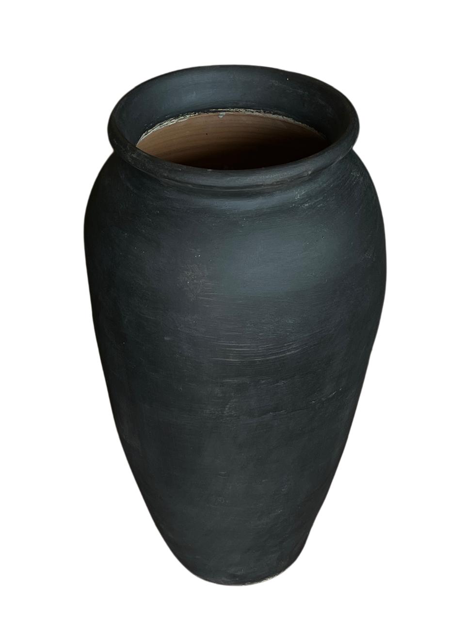Maceta de 36x69cm. Negro, Terracota, y Blanco con partes terracota